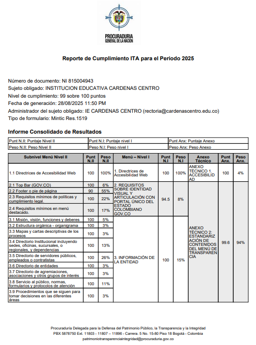 Reporte cumplimiento ITA 2025